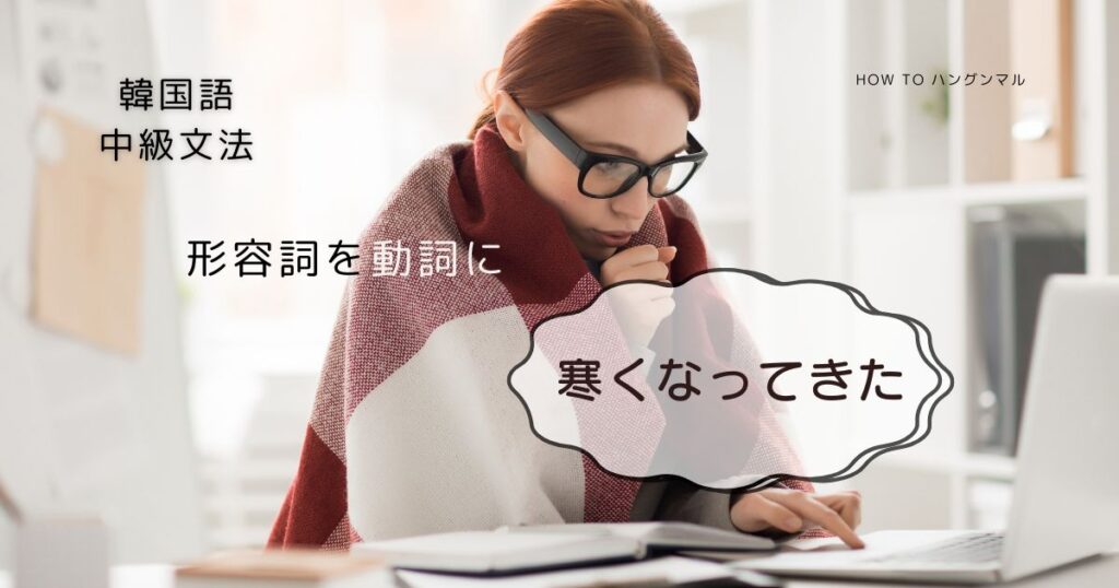 形容詞を動詞にする「~なる」を紹介します。「寒い」→「寒くなる」という表現に変えることができるということです。ぜひ、覚えてください。